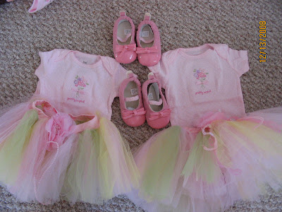 The girls measured 3 lbs. 3 oz and 3 lbs. 4 oz. at our sonogram on Monday. Baby A was vertex and Baby B was breech, with her head squished up into my ribs. We got pictures of their ears (?!) and they both looked beautiful and healthy!